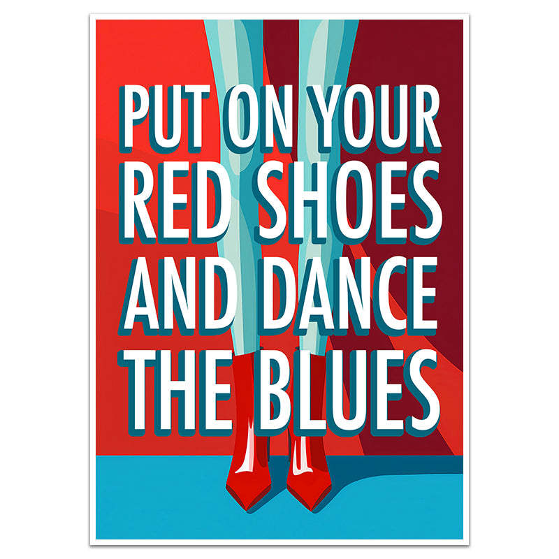 Put on your red shoes with this iconic 'Let's Dance' lyric print by David Bowie. Featuring the timeless song lyrics in a striking red and blue design, this vibrant poster is a must-have for any fan. Perfect for adding a touch of 80s retro cool to your living room, music room, or office. The ultimate gift for a Bowie lover!