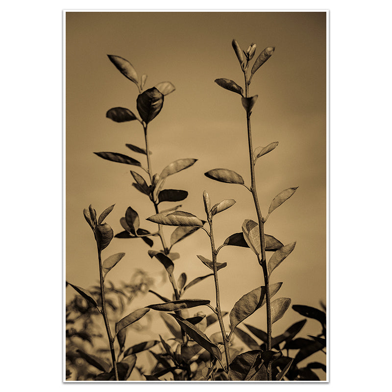 A fine art photograph titled "September in France." This minimalist composition captures the quiet beauty of young plant shoots in a warm, nostalgic sepia tone. Its serene and contemplative mood makes it a perfect piece for adding a touch of understated elegance to any room. Printed on premium, archival photographic paper to ensure lasting quality and tonal richness.